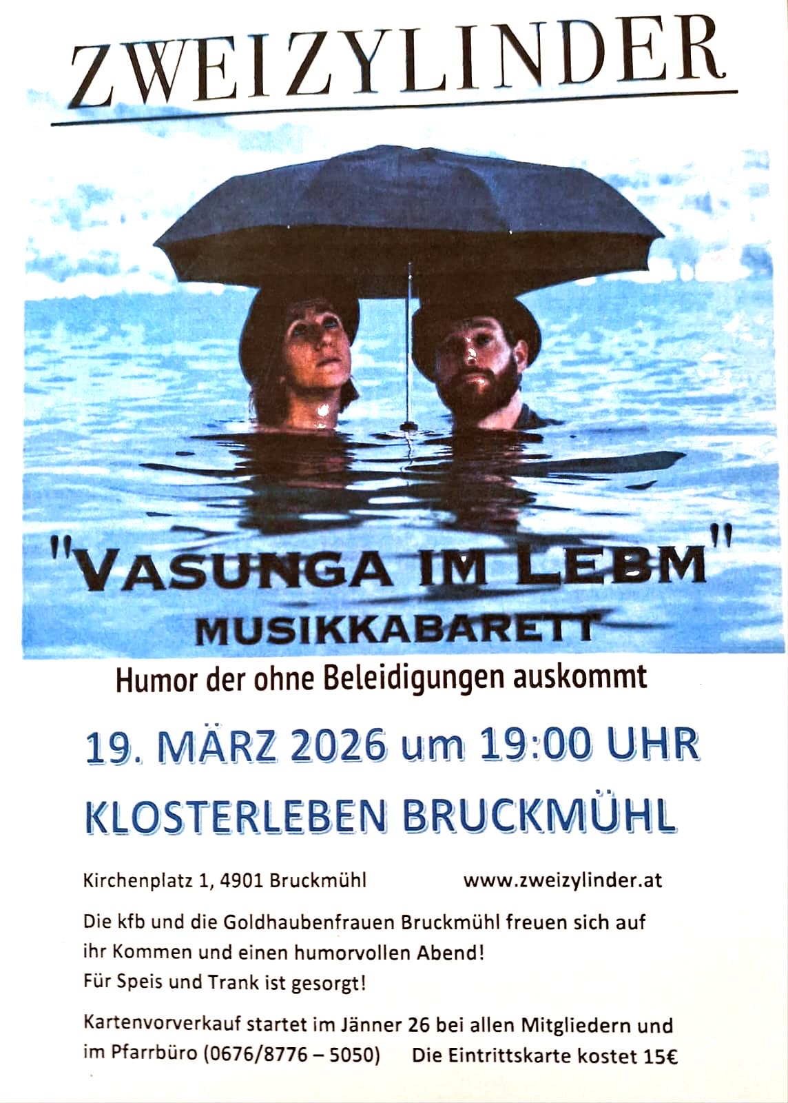 | 19. März Donnerstag | 19 Uhr | Pfarre Bruckmühl | Pfarrsaal Bruckmühl — OÖ |