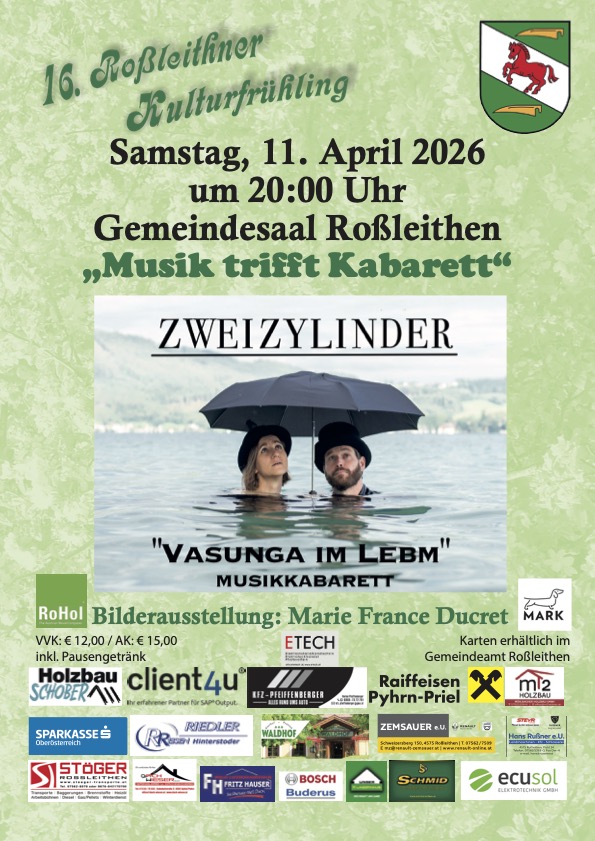 | 11. April Samstag | 20 Uhr | Kulturfrühling Roßleithen | Saal der Gemeinde Roßleithen |